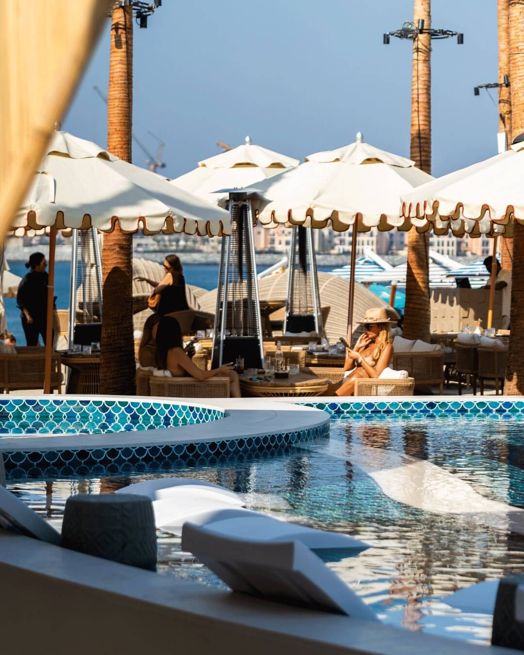 By Thursday, indulgence awaits. Gigi Rigolatto offers A Summer Escape (daily, 10 AM till sunset), where shaded cabanas and loungers open up to a day of sun, sea, and style. Mediterranean flavours, refreshing cocktails, and the ease of knowing that your cabana comes with more than just comfort, make it one of the best beach clubs in Dubai.